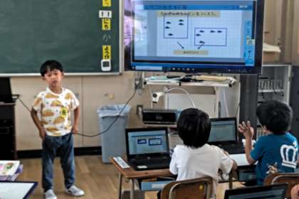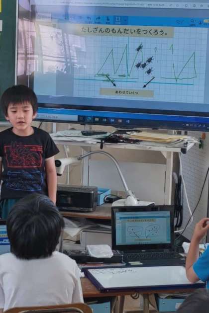 算数科でのたし算を使って答えを出す問題では、パソコンを使って作成し、発表しました。