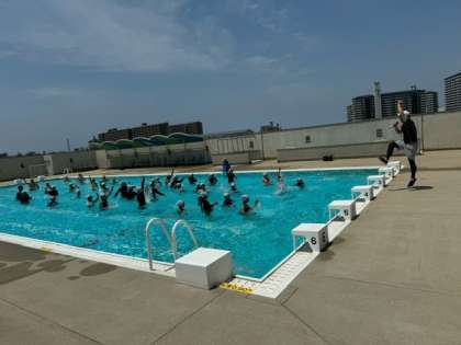 ウォーミングアップ、水慣れダンス、クロール、洗濯機からの宝探しをしました。