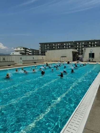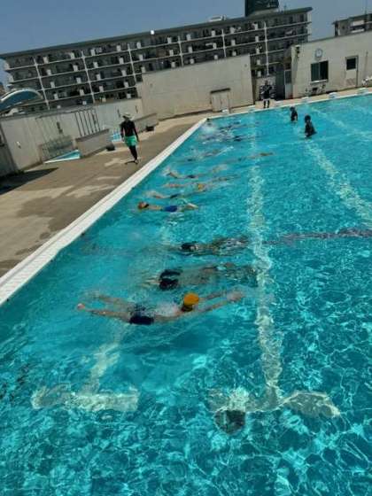 3限の45分で、今年初のプールに入りました。この時期にしては気温が高いので、冷たくて気持ちが良かったようです。