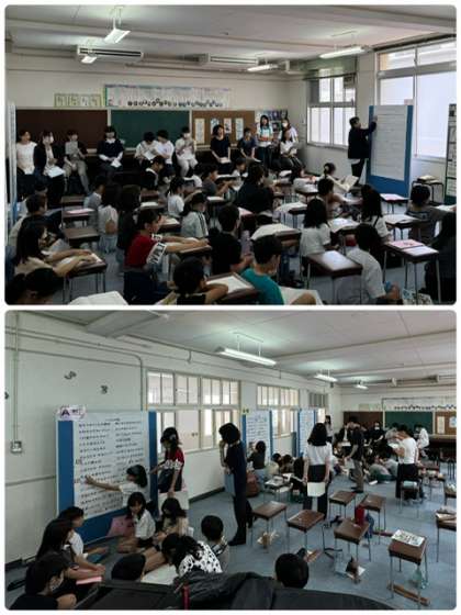 修学旅行の平和セレモニーで歌った「いのちの歌」をより良く歌い、報告集会ではどのように発表したいかを考えました。