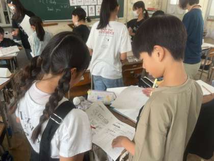 友だちのすきな教科を聞いた後にnice! Wow!と言いながら会話を楽しんでいます。