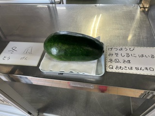 子どもたちはなにこれー?と大きな冬瓜にびっくりしていました。