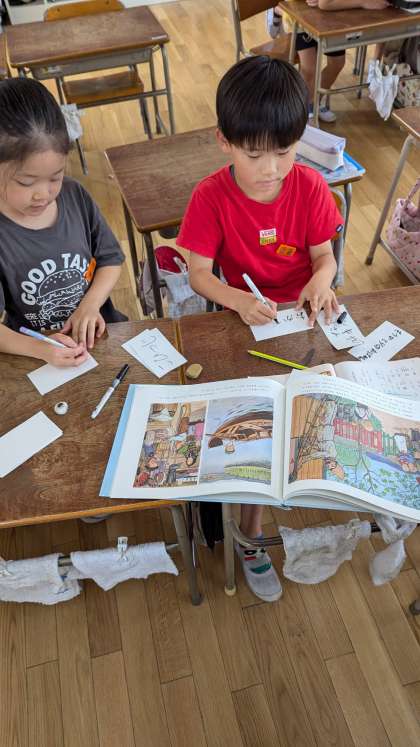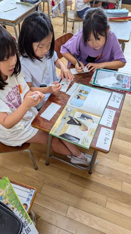読み広げをした文章で出てきた人物や場所を書き出し、黒板に貼りましました。