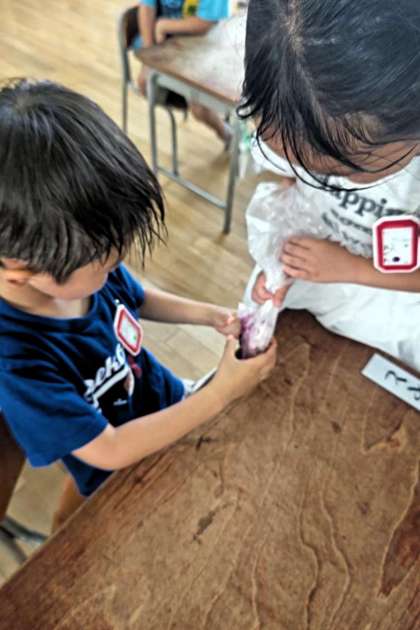 「おおばこ相撲」の他にも「シロツメクサを使って」「あさがおの色水づくり」がありました。