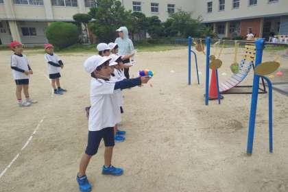 チーム戦、的あてなど色んなゲームで楽しむことができました。