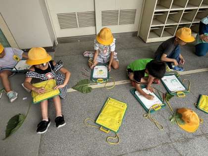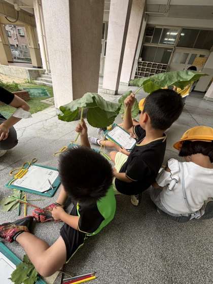 オクラやヒマワリの葉を実際に触りながら学習を進めています。