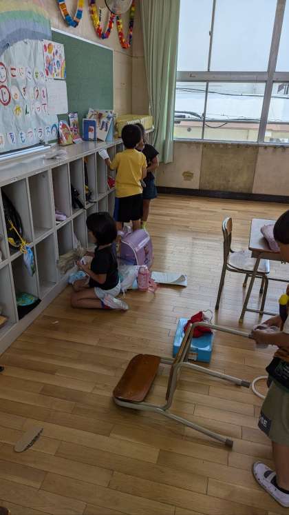 机やイスの足の裏や、体操服入れのロッカーなど、普段掃除しないところまで綺麗にしました。