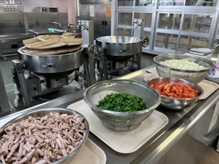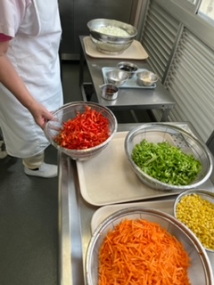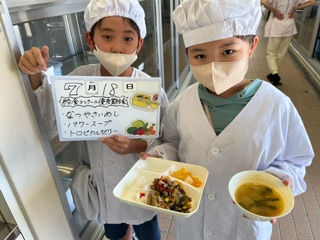 夏祭りのだんじりを盛り上げるために、給食で夏野菜をたくさん食べて体力をつけることができるように工夫されています。