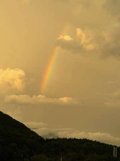先ほどまで、雷とゲリラ豪雨でしたが、ラッキーレインボーが顔を見せてくれています。