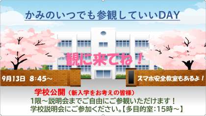 日 時 9月13日(金) 参観 8:45〜説明会まで