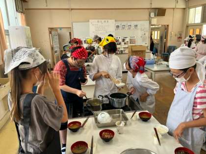 リーダー、サブリーダーが朝からお米を洗ってくれました。お米を炊き、お味噌汁を作り…今からいただきます!
