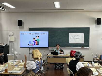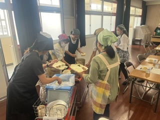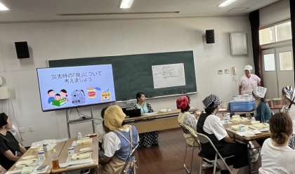 調理員さんからも給食についてのお話をしていただき、喫食後は栄養教諭からも災害食についての講話がありました。