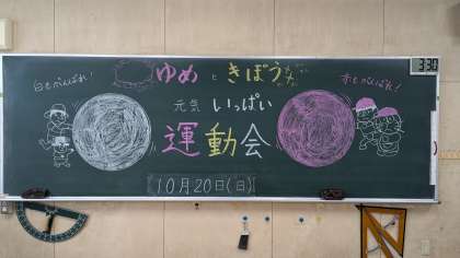 運動会に向けて黒板を彩りました。