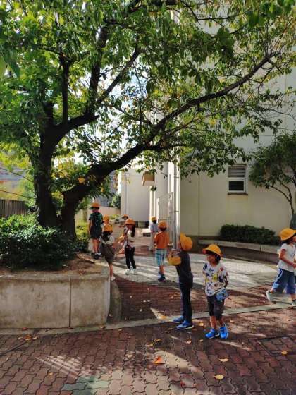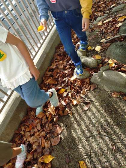 黄色や茶色、赤っぽい色の葉をみんなで見つけ、秋をさがしを楽しみました。
