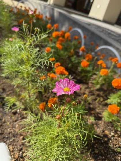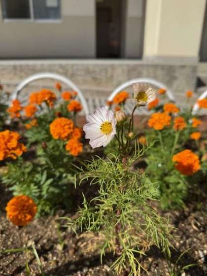 また、コスモスも開花し始め、さらにキレイでカワイイ花壇になりそうです。