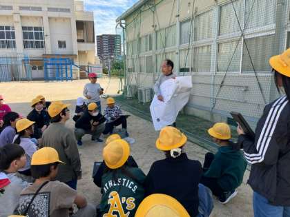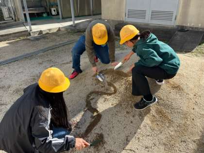 みんなで土を掘って水を流しています。ここ、流れが早い!遅い!など、気付いたことがたくさんあったようです。結果は次の時間にまとめます。