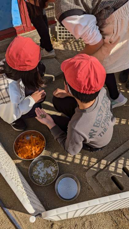 手に餌を乗せて食べさせたり、抱っこをしたり。