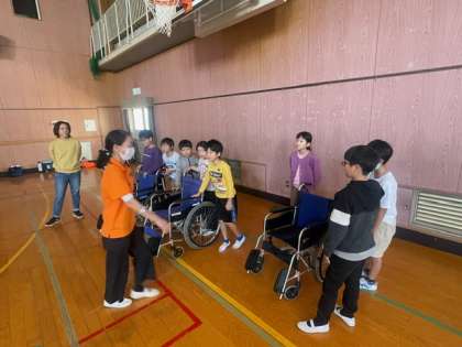 今日は、車いすの体験学習がありました。普段はあまり乗る機会がない車いすの操作の仕方や介助の仕方などを教えていただきました。また、車いすダンスや車いすバスケなども体験させていただきました。