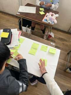 たくさんの情報を種類ごとに分けると分かりやすいと気づき、グループごとに好きなものを付箋に書き出し分類しました。