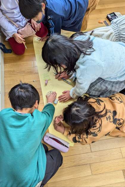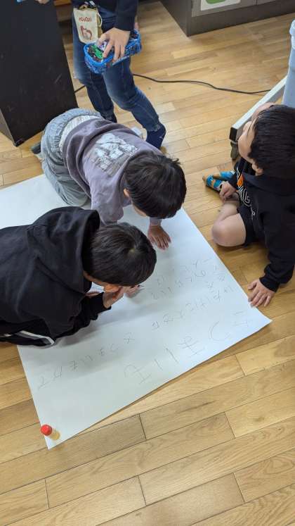 本を見てクイズを考えるグループ、プログラムを作るグループ、歌詞を書くグループに分かれて活動しました。