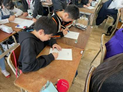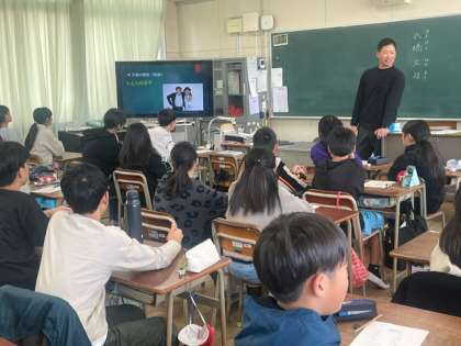 今日は、歌島中学校から先生方が来ていただき国語の授業をしてくださりました。