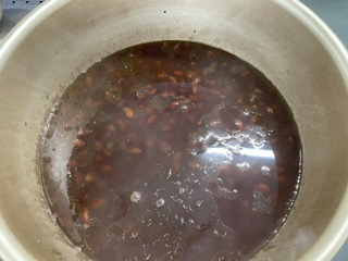 一般的には、一晩水に浸したりする行程が必要ですが、給食では朝から調理をスタートし、ホクホクの食感に煮炊きしています!