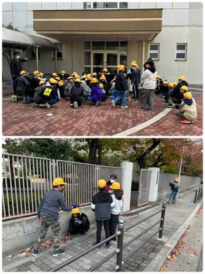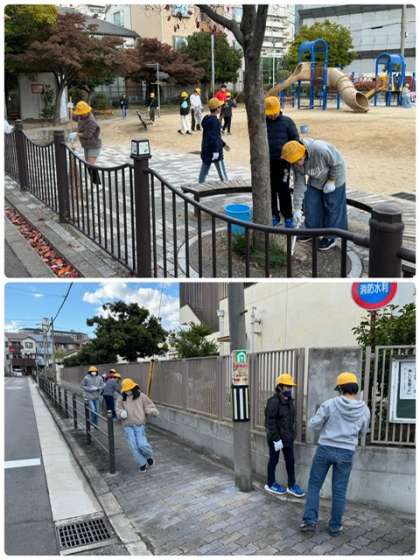 5年、6年の児童が学校周辺のゴミや落ち葉を拾い、地域の美化に務めました。