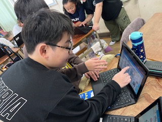 先日作った理想の町を友だちに見せ、道案内をしました。