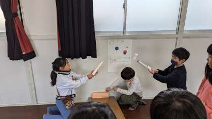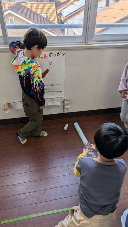 せっかく作ったおもちゃ、自分たちだけで遊ぶにはもったいない、ということで、1年生を招待して楽しみました。