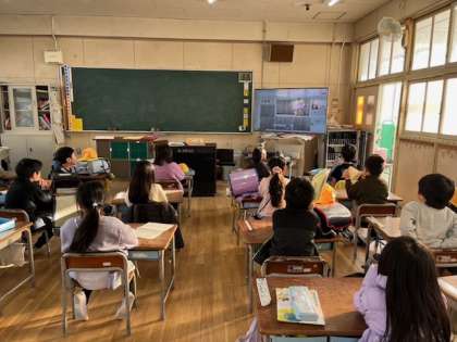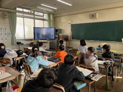 今週の月曜日は体育館の照明工事のためteams での全校朝会となりました。