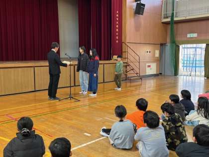 美化と挨拶のボランティアの表彰状が5,6年生に授与されました。