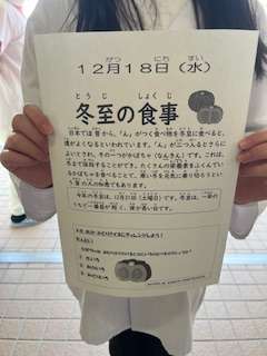 日本では昔から「ん」がつく食べ物を冬至に食べると運が良くなるらしいといわれています。中でもかぼちゃ(なんきん)は、冬まで保存することができ、たくさんの栄養素を含んでいるので、寒い冬を元気に乗り切ろうという昔の人の知恵でもあります。