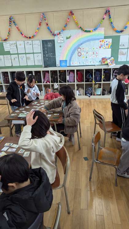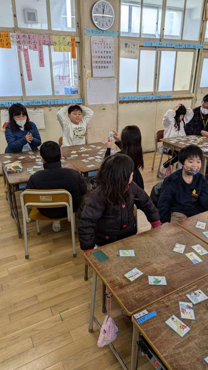 国語科の教科書で学習した「昔から伝わる言い方」に出てくる『いろはかるた』を用いて行いました。