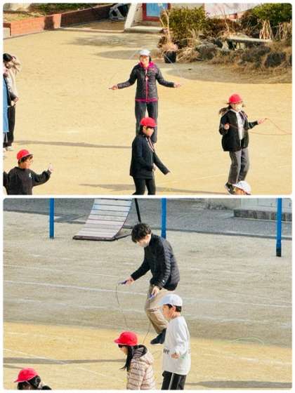 2時間目終わりの15分休みで、頑張っています。先生方も体力維持のために跳んでます。
