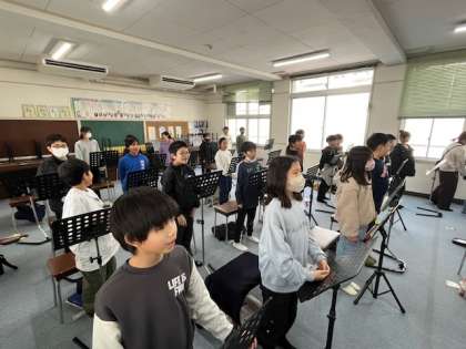 今日は、声が出にくいところはハミングの練習をすると高い音が出ることに気が付きました。その後は、卒業式に向けての歌の練習を行いました。