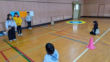 1年生と幼稚園生が交流する幼小連携には、2年生も先輩として補助に入ります。