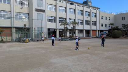 普段学校ではボールを蹴る機会がないので、ワクワクしながら取り組んでいました。寒さに負けずたくさん身体を動かして欲しいと思います。
