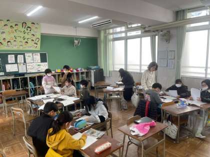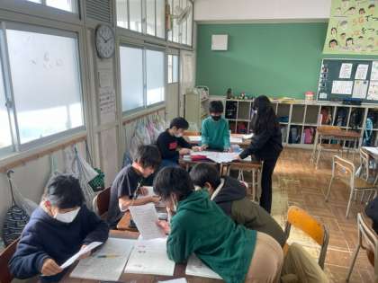 国語科の「調べたことをほうこくしよう」の単元を学習しています。各班ごとにアンケートを作成して、お互いに回答して集計する作業をすすめています!