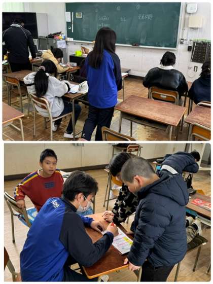 今日からの二日間で、歌島中2年生の8名が教員の体験をしに来ています。