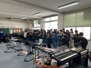 6年生はスマイル班で5年生にバトンを渡した後、音楽室で6年生を送る会とファイナルコンサートに向けて猛練習中です。