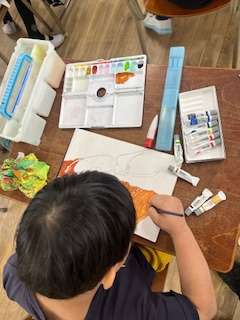 コリントゲームか迷路を選んで、コースやデザインを考えました。色ぬりを丁寧に進めています。