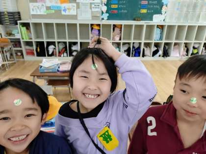 毎日美味しく食べて、完食できている1年生に調理員さんからプレゼントをいただきました。