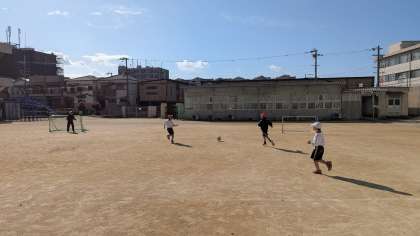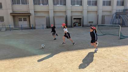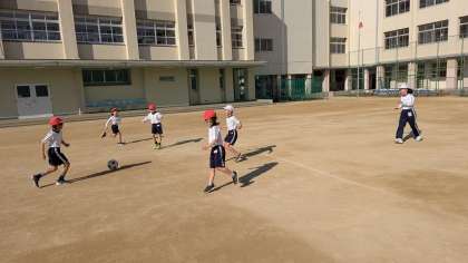 あくまでも「楽しい」「できた」「またしたい」を大切にして授業を組み立てました。楽しんでボールを蹴っていました。