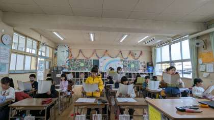 後半はお気に入りの場面を絵にしました。そこの場面には誰がいるのか、どんな表情なのか、どこなのかを考えることを通して文章を深く読むために、想像力を高めるために行いました。どんな場面絵が完成するのか楽しみです。