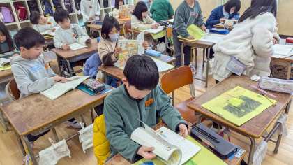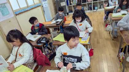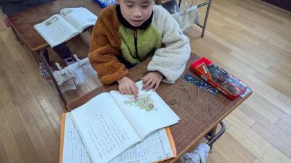 預かっていた教科書を渡し、本物の挿絵と見比べました。