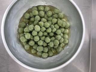 給食のよもぎだんごはうるち米、もち米、よもぎから作られています。