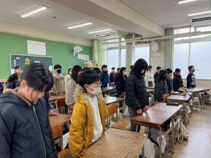本校でも14時46分に亡くなられた方への哀悼の意を表し全員で黙祷し、防災・いのちの大切さについて考える時間としています。