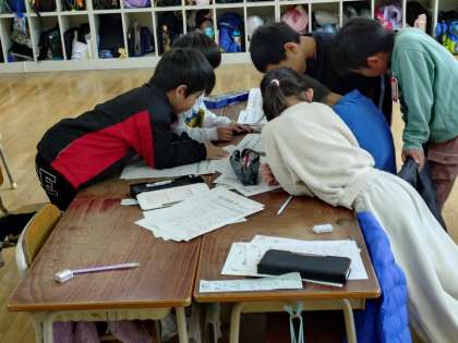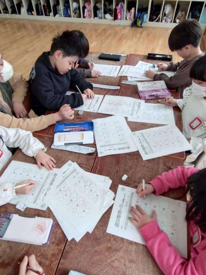 かたちの学習の1つとして、点つなぎ(同じ形をマネして描く学習)をしました。