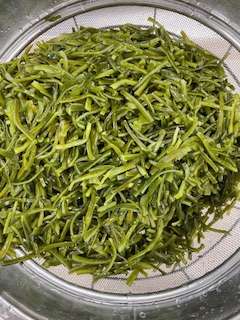くきわかめは、わかめの葉の真ん中の部分で、歯応えのある食感が特徴です。