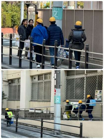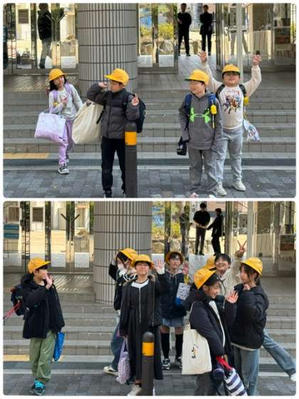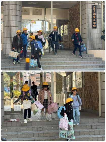 各学級での活動を終え、正門から出てきました。